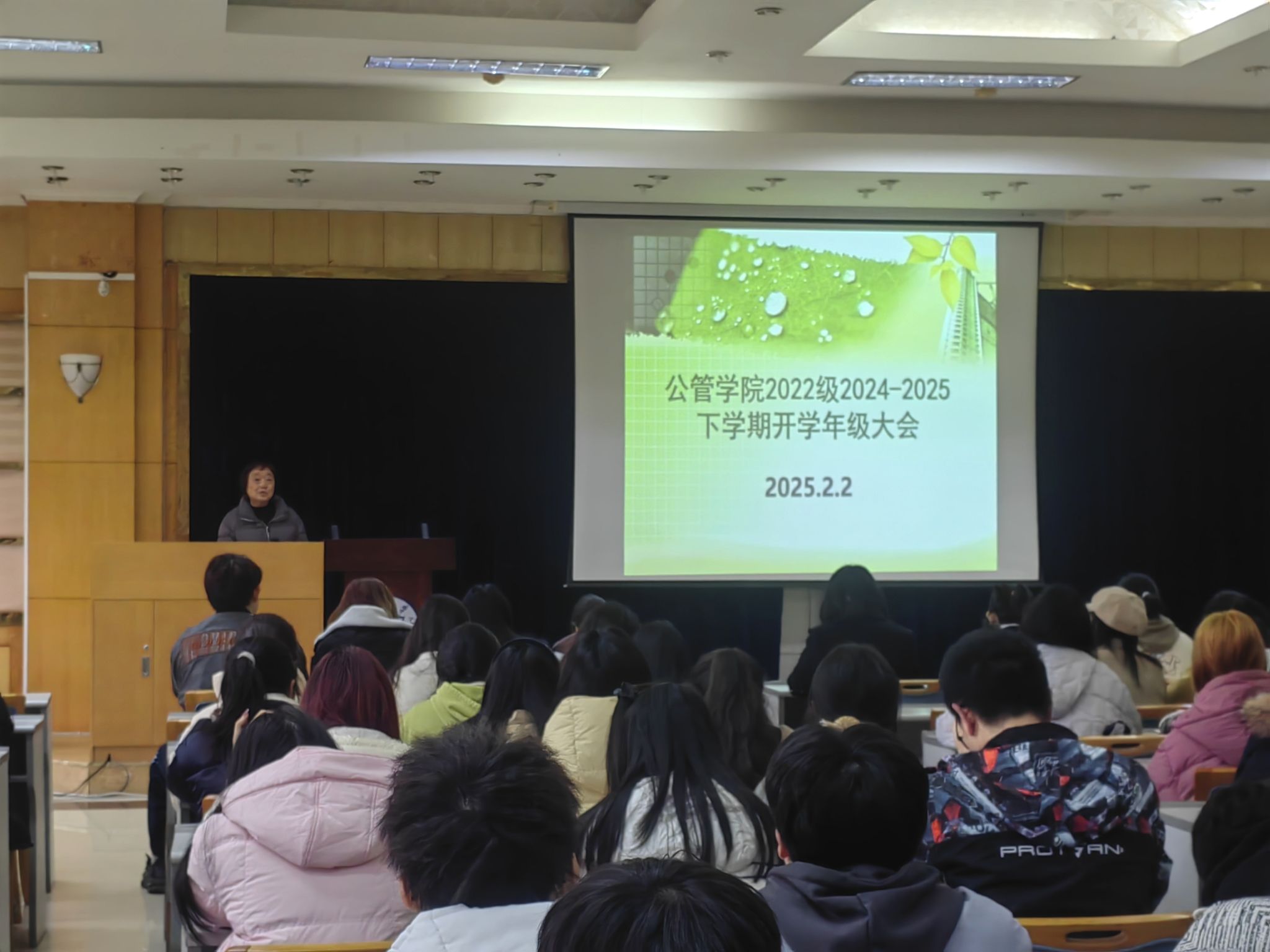 2022级2024-2025学年第二学期开学年级大会在学院楼202多功能会议厅顺利召开。本次大会由学办主任兼22级辅导员王丽娟主持,22级全体同学参与了本次年级大会。