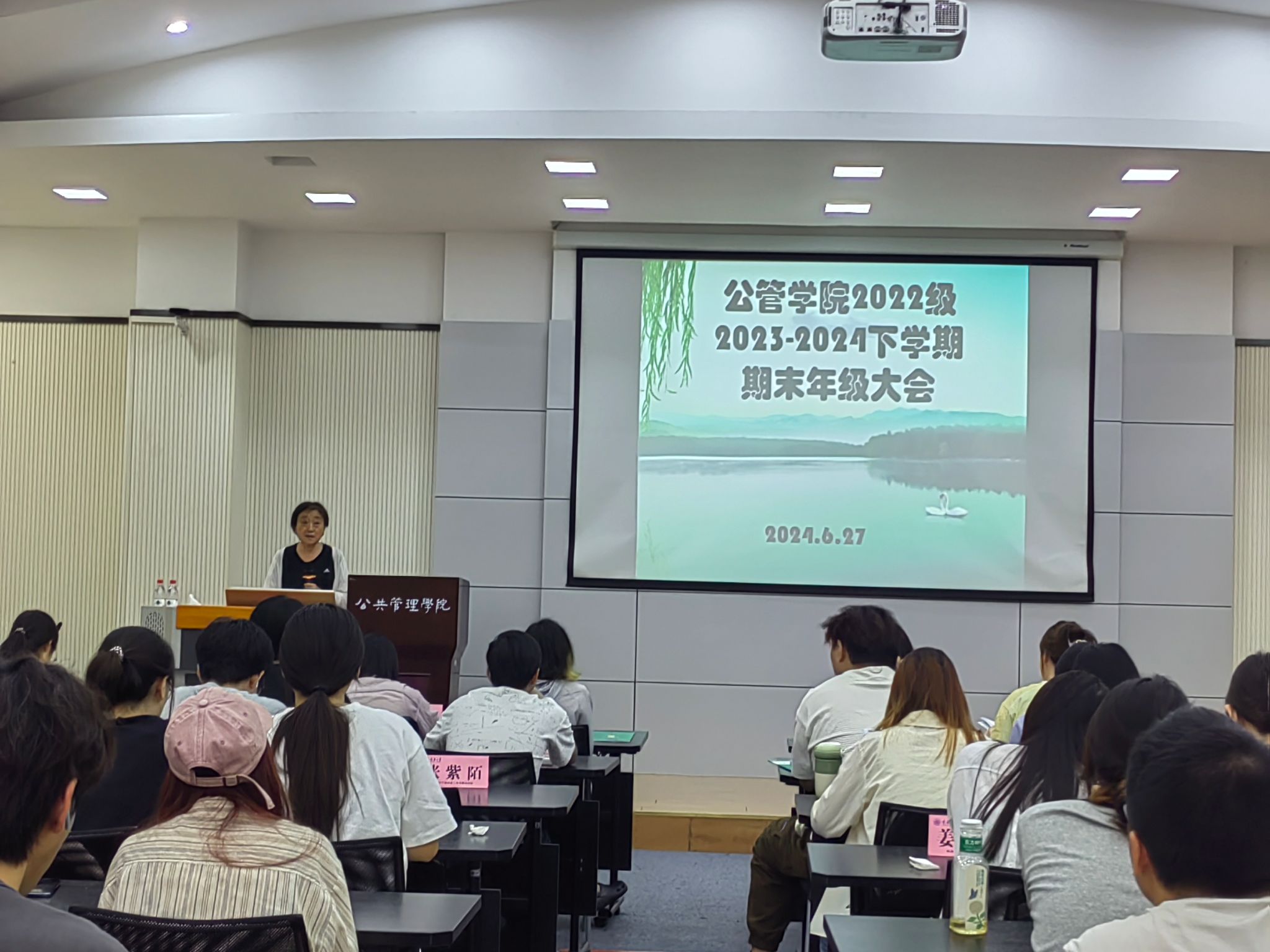 2022级2023-2024第二学期安全暨期末年级大会在学院楼102会议室顺利召开。本次大会由学办主任、22级辅导员王丽娟主持,22级全体同学参与了本次年级大会。
