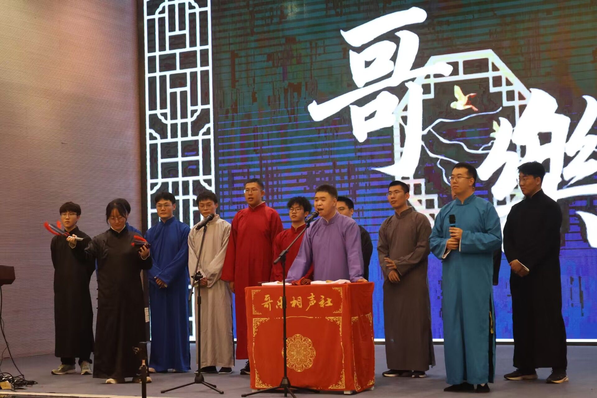 本次哥乐相声社为大家带来的演出节目有:张宏杰、杨皓翔《倒打灯谜》;李磊、彭毅《羊上树》;史若涵、李瑶月《男朋友女朋友》;孔通、王一鸣《欢声笑语》;汪宇昊、蔡澄瑞《味道东坡》;周朗、吕木子《福寿全》。绘声绘色的曲目不禁令人捧腹,为现场同学带来更多欢声笑语。在演出的过程中,观众席时不时爆发出一阵哄笑。这也是哥乐举办新生专场的初心——“传扬艺术,服务同学”。