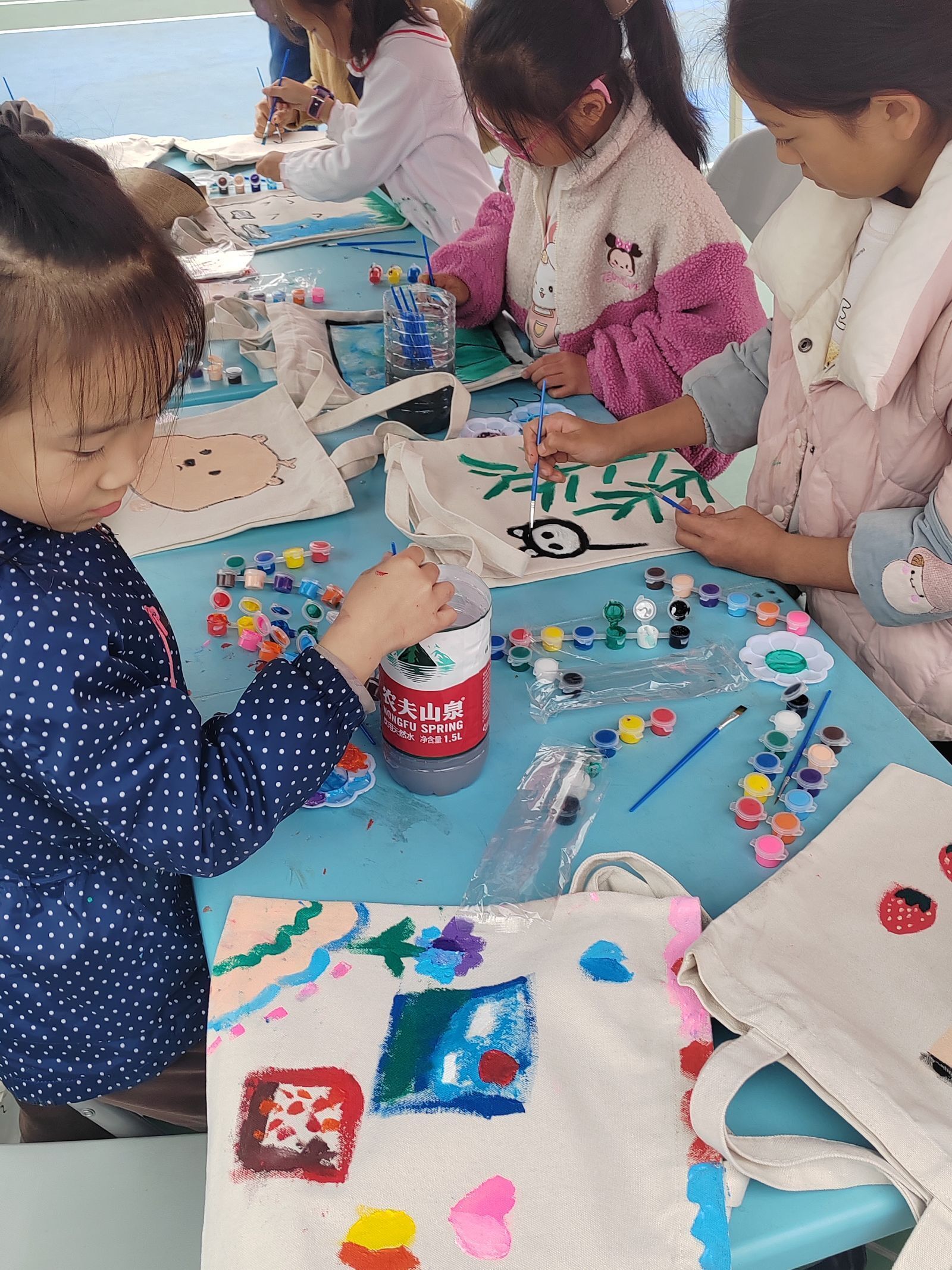 活动还包括环保袋的DIY环节,志愿者们尽情发挥自己的想象力,在环保袋上画出想要的图案,让他们体验变废为宝的成就感,其中不乏一些小志愿者。