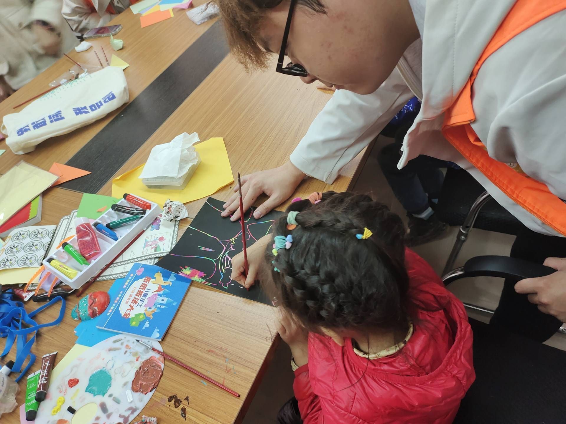 活动开始后,志愿者们拿上自己独特的活动道具,与小朋友们一齐玩来起来。洁白的石膏娃娃被小朋友们的奇思妙想染成五彩缤纷的颜色,如刚从童话世界走出般可爱;漆黑的纸面也不能“幸免于难”,它脏兮兮的小脸上绘出童年的天真;突然间的欢笑闯入了这个艺术世界,定睛一看,原来是进行体育活动的小朋友们在酣畅淋漓的运动。欢声笑语,出没其间。