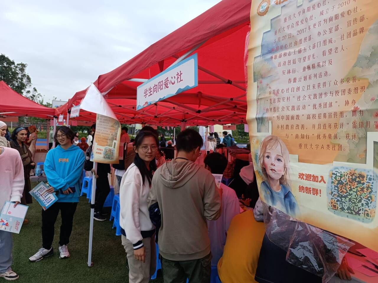 党委指导的向阳爱心社迎来了新一届的纳新活动。在学校的大力支持下,全校多个社团于教学周第11周纷纷启动纳新仪式。