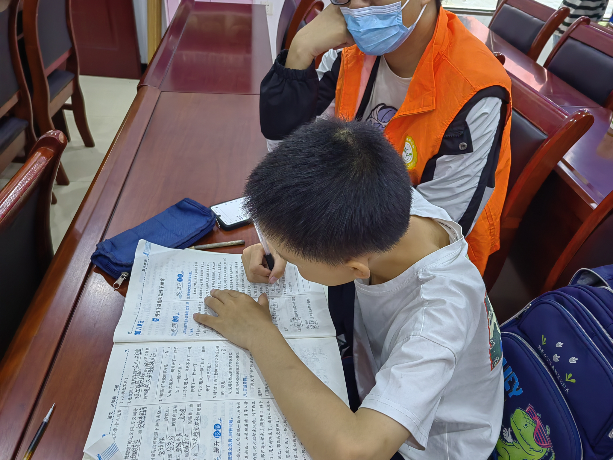 孩子们在几次活动之后已经非常信任志愿者们了,原来内向胆怯的看到哥哥姐姐也欢快地走到志愿者身边坐下。在互相打过招呼之后,便拿出了需要辅导的作业和习题,开始了本次的家教活动。
