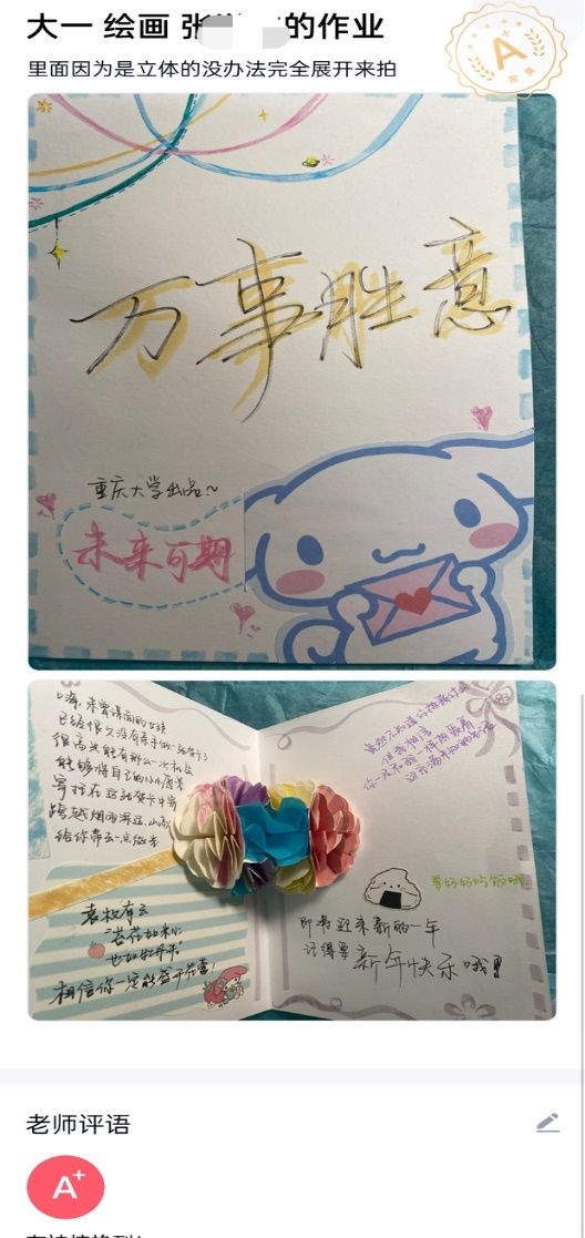 活动举办期间,“语润春蕾”活动受到了大家的广泛关注和积极参与。大家的陆续投稿,让我们看到了同学们的纯真的善良和良好的社会责任感。在众多投稿中,大多都制作精美。有的使用了活泼的贴画,有的使用了精湛的书法,有的使用了可爱的表情包,有的甚至附上了小礼物。这都是大家表达爱的方式。