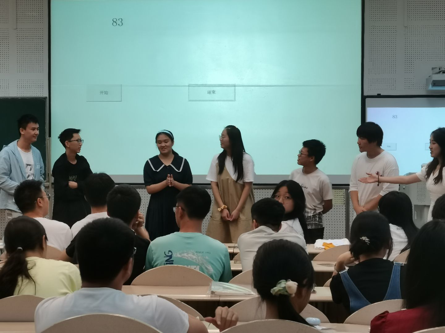 接着便是社员们精彩纷呈的节目表演。文化部、志工部等五个部门成员各出奇招,逗得台下的同学们捧腹大笑。其中,由荣召康同学演唱的《光照的方向》更是将整场庆典引入高潮。表演之后,是社员们积极参与的游戏环节。第一个游戏是你比我猜,其中游戏成员对“含笑半步颠”一词的比划可谓是表演到了精髓。第二个则是听歌识剧名,无数童年动画的主题曲在耳边响起,童年的回忆又涌入了脑海,社员们争抢回答赢得一张张纪念意义的明信片奖励。第三个是谁是“凶手”游戏,该游戏略具难度,但是难不倒聪明的向阳社员们,最终“凶手”被成功指认。