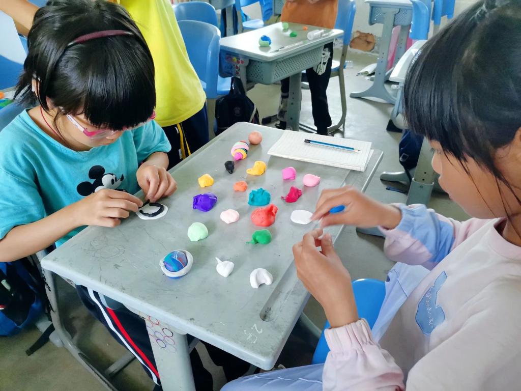 在手工制作环节,孩子们充分发挥动手能力和想象力,创造出了属于他们的星空。他们跟随老师的讲解将一个个的小行星放入指定位置,尽情地发挥着自己的想象力,把星星们捏成自己喜欢的形状。在这堂天文知识探索课中,小朋友们不仅收获了欣喜和快乐,也对充满神秘色彩的浩瀚天际有了更多的了解。