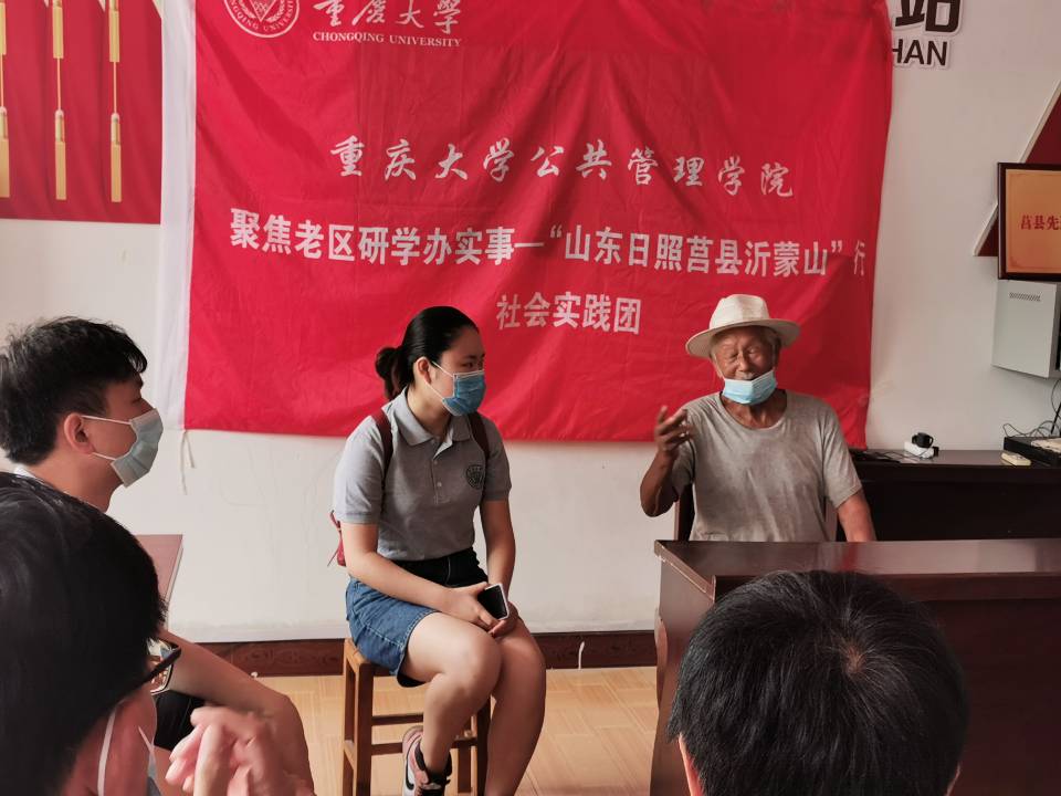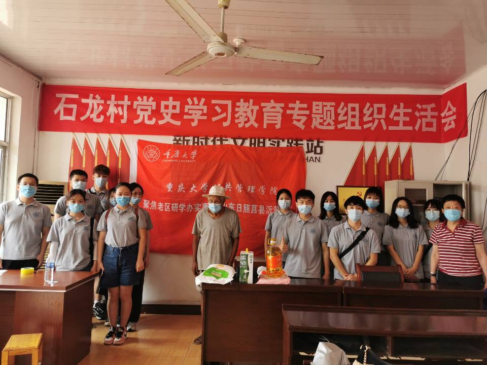 参观完石龙村的建设情况,实践团转场至党群服务中心向贫困家庭进行捐助以及访谈九十八岁高龄的革命老兵。同学们将崭新的书包和慰问金交到孩子们的手上,鼓励孩子们刻苦学习,成长为国家的栋梁之材。随后,寇书记为我们请到98岁高龄的老八路军爷爷,讲述他的抗战故事,倾听他对新时代社会主义建设的看法。看见同学们,爷爷激动地说到:“以前的日子很苦,连馍馍都吃不上,现在大家把馍馍当成主食吃,还要就着咸菜,不然吃不下,说明大家的生活水平变好了。没有共产党和人民群众的不懈努力,就没有现在的美好生活。”八路军爷爷的一番话让同学们受益良多,现场掌声雷动。
