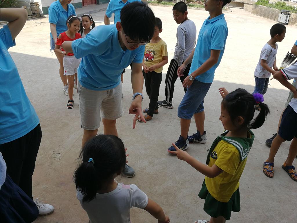 同一片大地上,同一个屋檐下,心与心的距离在交谈中不断被拉近。破冰游戏之后,支教活动正式开始。队员金子建、李韬为孩子们准备了“时事看天下”的课程,给孩子们介绍了美国、英国、德国等国家的文化以及中国近五年的建设与发展;队员田旺、张云翔以击鼓传花的游戏开始了“心理健康”课程,与孩子们面对面沟通,在交流的过程中,逐渐打开他们的心扉。