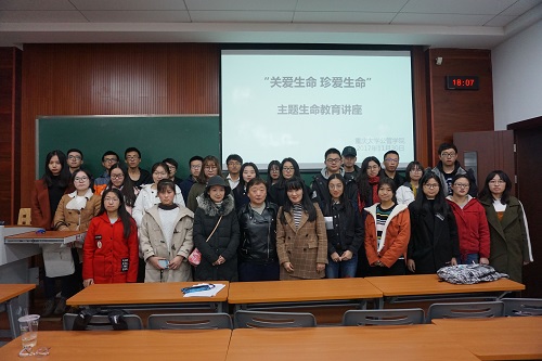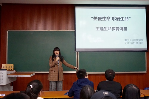 公管学院“关注生命 珍爱生命”系列活动之“珍爱生命 爱在传递”主题生命教育讲座于D1148教室如期举行。作为“关注生命,珍爱生命”主题教育系列活动的重要组成部分,本次讲座由公管学院团委书记兼14/15级辅导员徐柳主讲,面向16/17级的同学们讲述“心理健康”背后的秘密。院学办主任兼16/17级辅导员王丽娟、辅导员助理李为出席此次讲座。