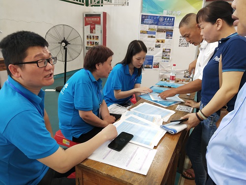 师生一心,齐心协力。本次第一线路首次开创了带学生参与招生的先例,学院大二学生刘彰麒本是广西桂林考生,现场以身说法与考生、家长谈及自己当年高考的总体情况,自己选择重大的理由以及在重大的就读体验。不少家长与考生听的津津有味,对重大的期待又多了几分。带队老师17、18级辅导员兼学办主任王丽娟表示:带学生本来是想喊他们帮忙做些事情,但感觉是一大创举,学生现身说法,家长和考生更愿意和他们沟通和接触,希望以后能够推广。党委副书记刘淳也表示:学生现身说法不仅效果显著,对学生的成长也是锻炼。学院此次招生宣传上下一心,充分体现了公管学院团结协作、拧成一股绳的高度凝聚力。来者不拒,建议中肯也体现了公管学院“尚道至公,管泽天下”的胸怀和气魄。