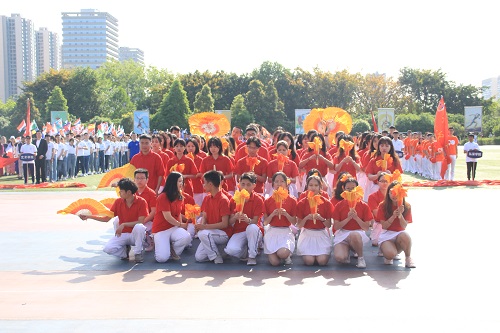随着仪式正式开始,各学院的方阵纷纷入场。他们个性飞扬,精神饱满,伴随着歌曲与舞蹈,将重大学子们的青春风采毫无保留地展现在观众面前。公管学院入场式以八八六十四人之势,身穿红衣手持花扇向我们走来,为学校献上精心准备已久的大礼,为虎溪的四月天带来了沁人心脾的芬芳。