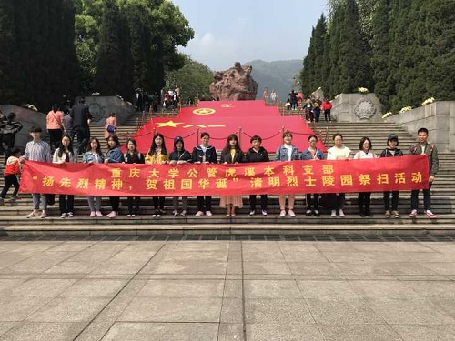 清明节来临之际,为缅怀革命先烈,加强爱国主义教育、庆祝中华人民共和国成立70周年,促进学院虎溪本科支部的精神文明建设,2019年4月5日,公管学院虎溪本科支部在党支部书记王丽娟的带领下,组织虎溪本科支部的党员及预备党员前往烈士墓进行了以“扬先烈精神 贺祖国华诞”为主题的扫墓活动。