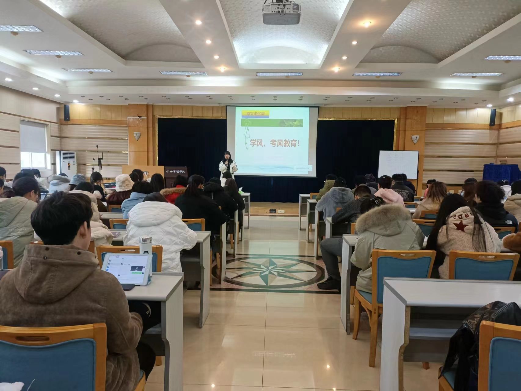 于学院楼202教室召开了2021级本科生学风、考风专题教育年级大会。本次会议由学院团委书记兼2021级辅导员徐柳主持,2021级全体同学出席本次会议。