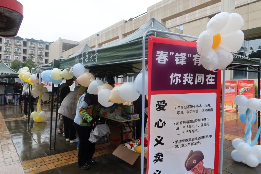 虎溪校区一食堂南广场开展了“春‘锋’有爱,你我同在”——学雷锋爱心义卖义捐活动。
