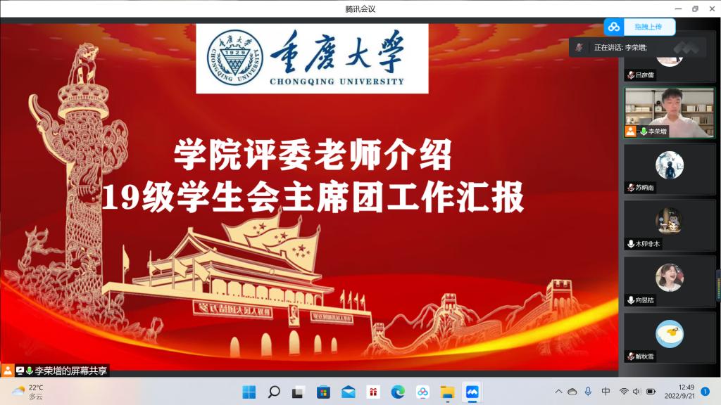 在展望未来的同时,李荣增同学代表19级学生会主席团对过去学院团委学生会的工作作出了总结汇报,在过去的一年里团委学生会拧成一股绳举办参加了多项活动,并取得了多项国家级、市级、校级荣誉,20级的同学们即将接过接力棒,一起创造更多的辉煌。