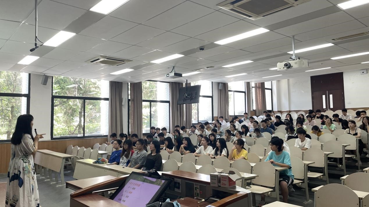 徐老师还向同学们介绍了学院学工和教务等事务部门的日常工作内容、办公时间、联系方式和所在地址,方便同学们后续的学习生活。随后,徐老师用详实的数据向同学们介绍了2022届本科毕业生的就业和升学情况,以此鼓励同学们:“在进入大二这一全新阶段后,一定要认真思考自己的目标和未来规划,无论是选择就业还是继续深造,都需要提前做好规划。在接下来的生活中认真学习,努力拼搏,积极参与课外活动,拓展自身的综合素质,提高自我的核心竞争力。”