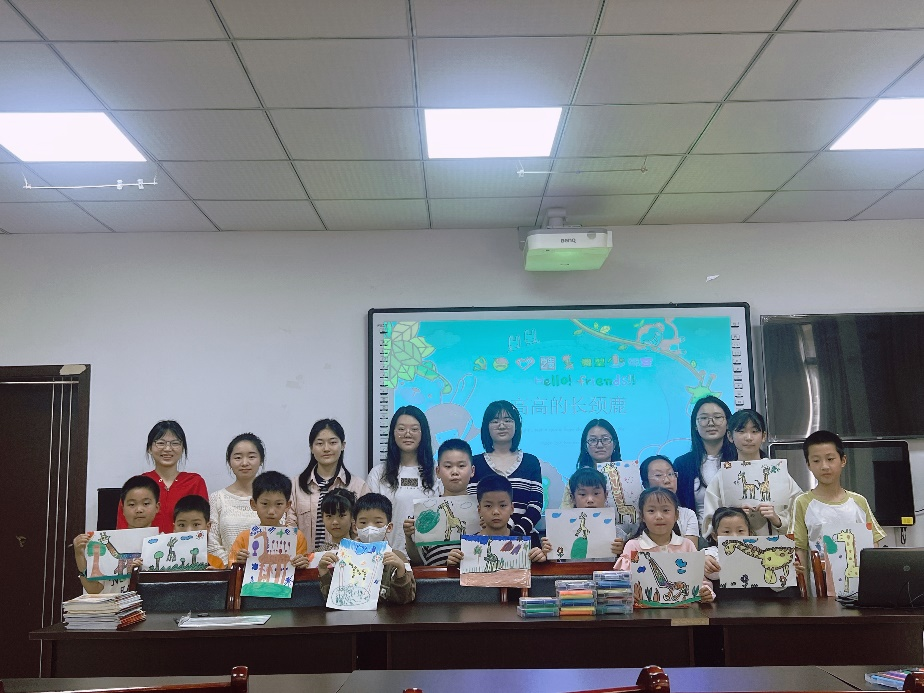 活动伊始,仁爱社会工作服务中心的社工为孩子们详细介绍了长颈鹿的习性与特点。讲解完毕后。孩子们开始自由发挥,用画笔描绘出他们心目中的长颈鹿。志愿者们忙碌地穿梭在孩子们中间,为孩子们提供绘画材料,并绘画过程中予以孩子们指导,引导、激发孩子们的创造力和想象力。借助这一活动,不仅让孩子们自由地表达内心的世界,也让志愿者去欣赏、倾听到了孩子们的“奇思妙想”,发现儿童眼中的美好。