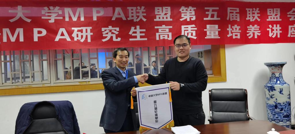 作为第五届联盟会议的承办方,由张鹏副院长向同济大学MPA中心副主任季禕鸣交接代表卓越大学MPA联盟高质量协同发展的轮值单位旗帜,同济大学代表下届会议承办单位表示将继续办好卓越联盟MPA会议,共同推进MPA教育高质量发展。