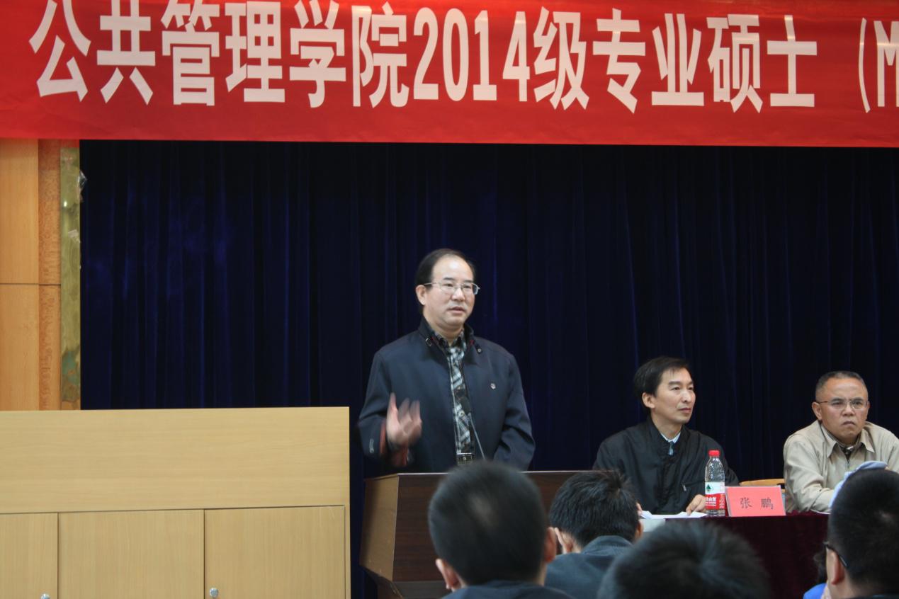的历史和学科背景,以及公共管理专业硕士(MPA)的设置意义,给同学们讲了三个定位,学校定位、学院定位和专业定位;两个为什么,为什么要办专业学位,为什么要培养MPA;一个珍惜,期望大家珍惜学习机会。