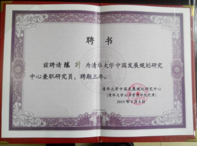 2015-09-22近日,清华大学中国发展规划研究中心举行仪式聘任电影天堂 陈升教授为兼职研究员。