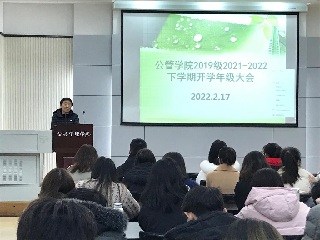 2022-02-21春风十里,瑞虎纳祥,挥别心爱的家人,结束短暂的寒假,重大学子顶着料峭春寒回到了亲切的校园,一个崭新的学期已然拉开序幕。为更好落实本学期的相关工作,2月17日下午五点,学办主任、19级辅导员王丽娟组织学院2019级本科全体学生,于学院楼102教室开展本学期第一次年级大会,并就各注意事项作出提醒。会议伊始,王老师首先祝福大家新学期新气象。短暂分别了一个寒假,看到同学们个个精神饱满、容光焕发,王老师感到由衷的...