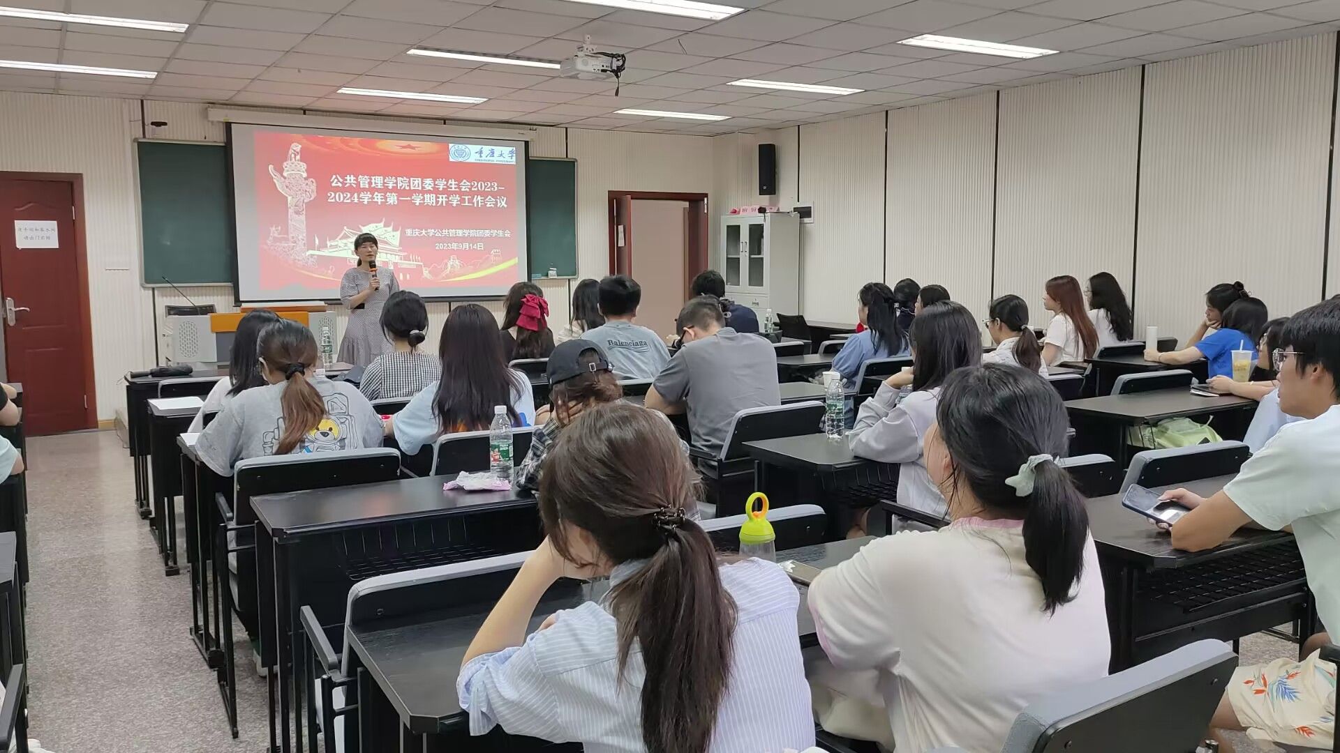 2023-09-202023年9月14日下午13点, 电影天堂 本科团委学生会2023-2024学年第一学期开学工作会议在学院楼106教室召开。会议由学院团委书记徐柳老师主持,2021级、2022级全体团委学生会干部到会参加。本次大会是学院本科团委学生会换届后的第一次工作例会,徐老师首先为大家理清了团委学生会各部门的组织架构和职能,强调了每个部门在学院团学工作中的重要作用,鼓励学生干部们各司其职,发挥好模范带头作用。随后,徐老师布置了召开公共...
