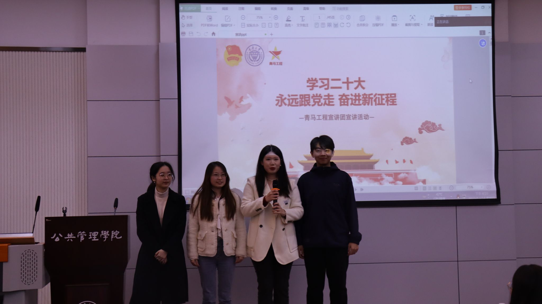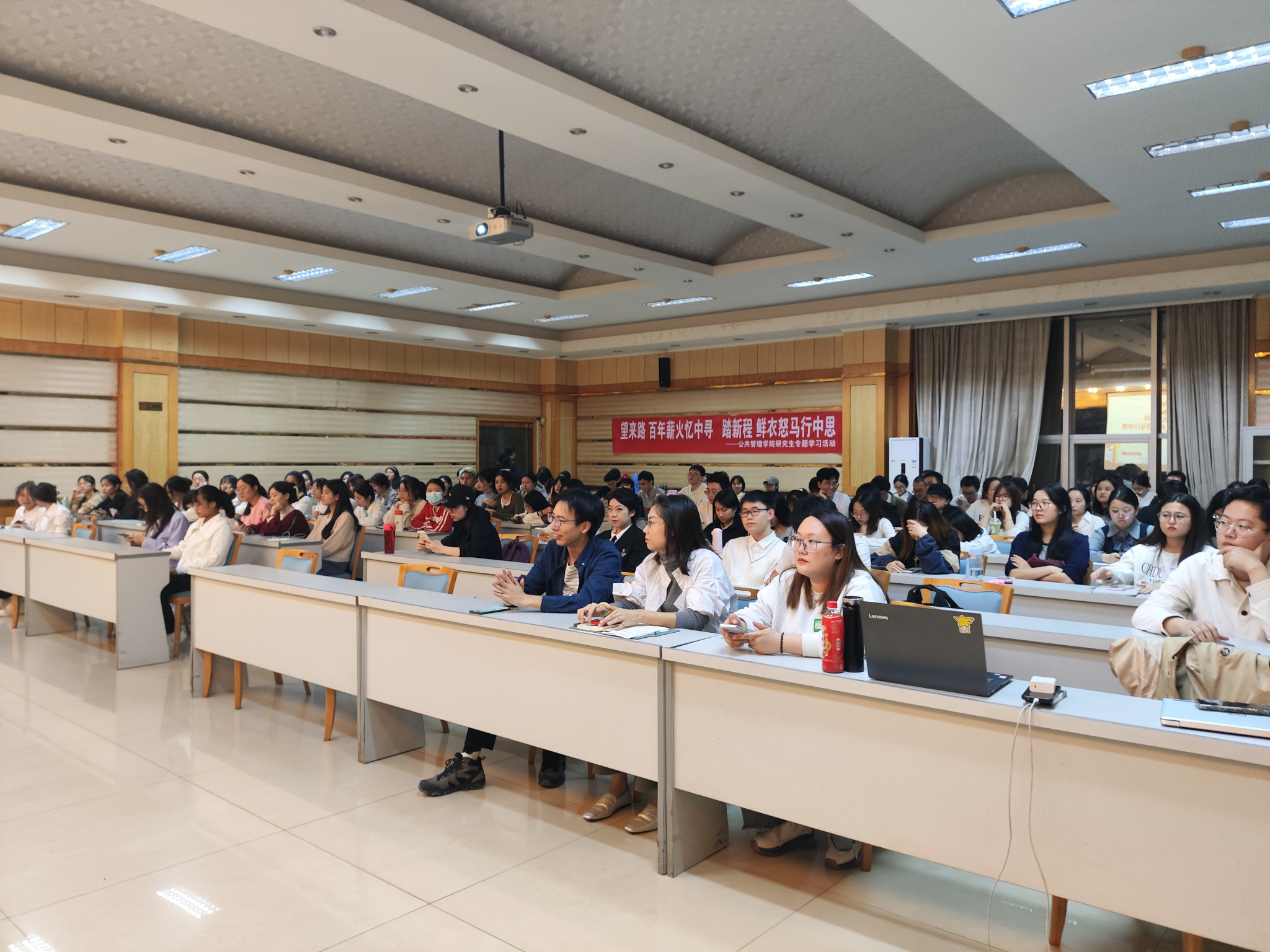 2023-11-112023年11月9日晚上19:00, 电影天堂 组织开展的“望来路 百年薪火忆中寻,踏新程 鲜衣怒马行中思”研究生专题学习活动在 电影天堂 202报告厅顺利举办。